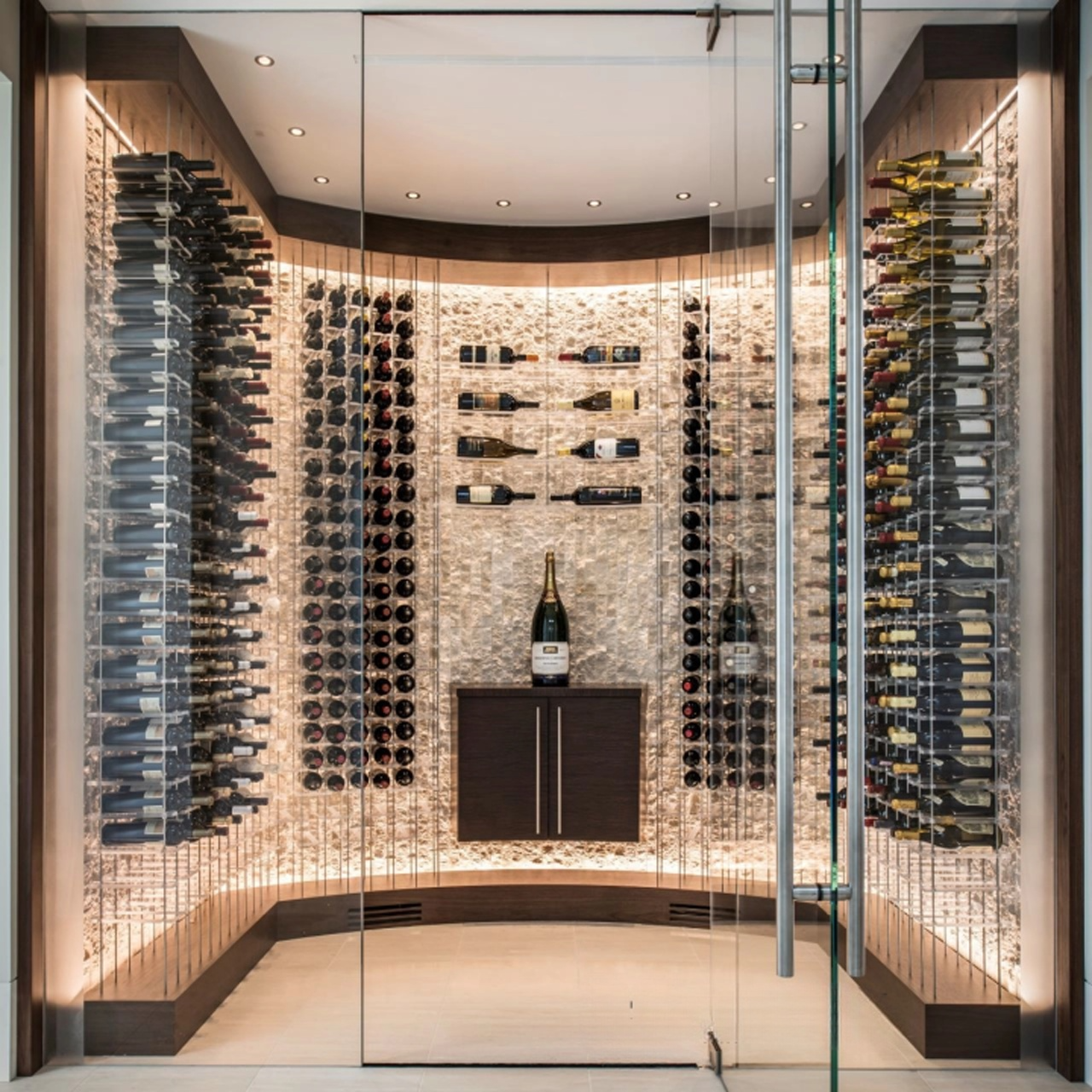 We begin with a conversation and a walkthrough of your space to understand your goals, your aesthetic, and your collection. You’ll get early guidance on layout, storage types, and the key performance elements that protect fine wine.